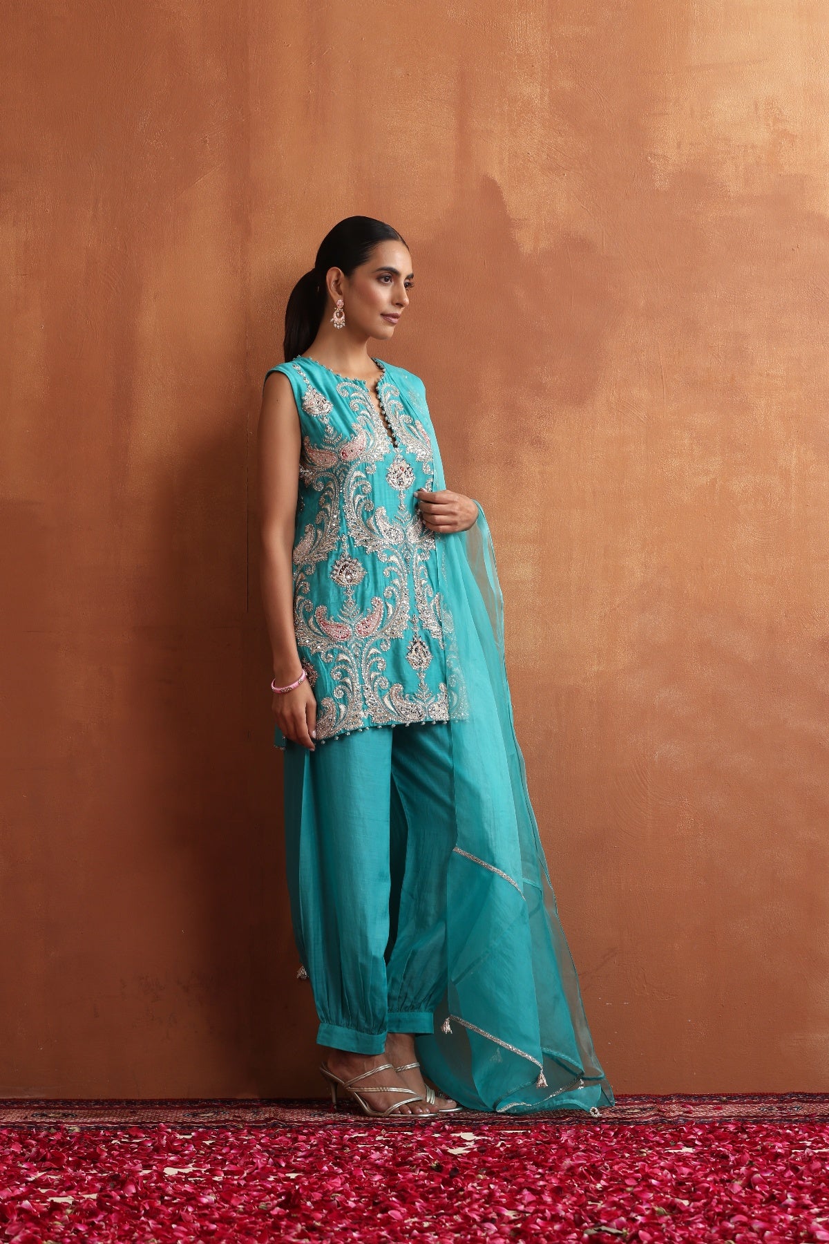 Featuring Aqua blue Fully embroidered kurta with matching salwar and duapatta