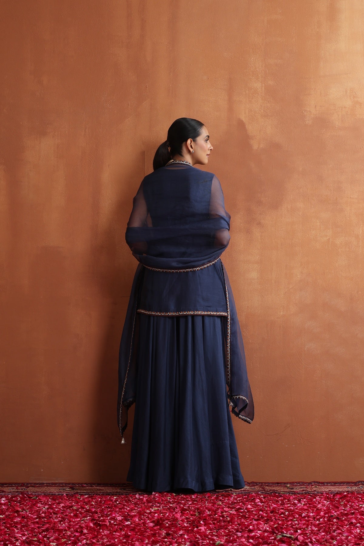 Featuring Deep blue embroidered kurta paired with matching sharara