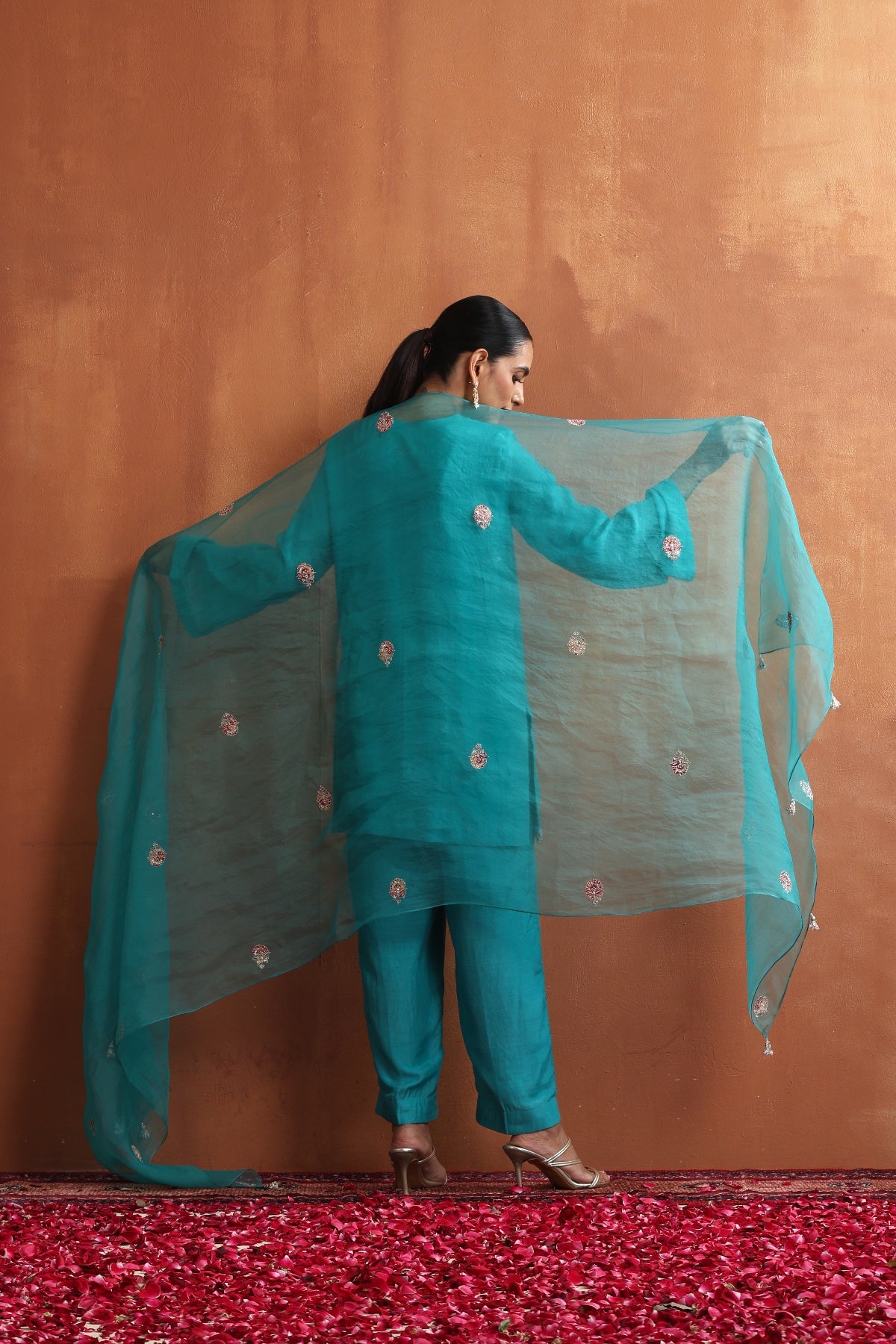 Featuring Aqua blue embroidered kurta with matching pants and dupatta