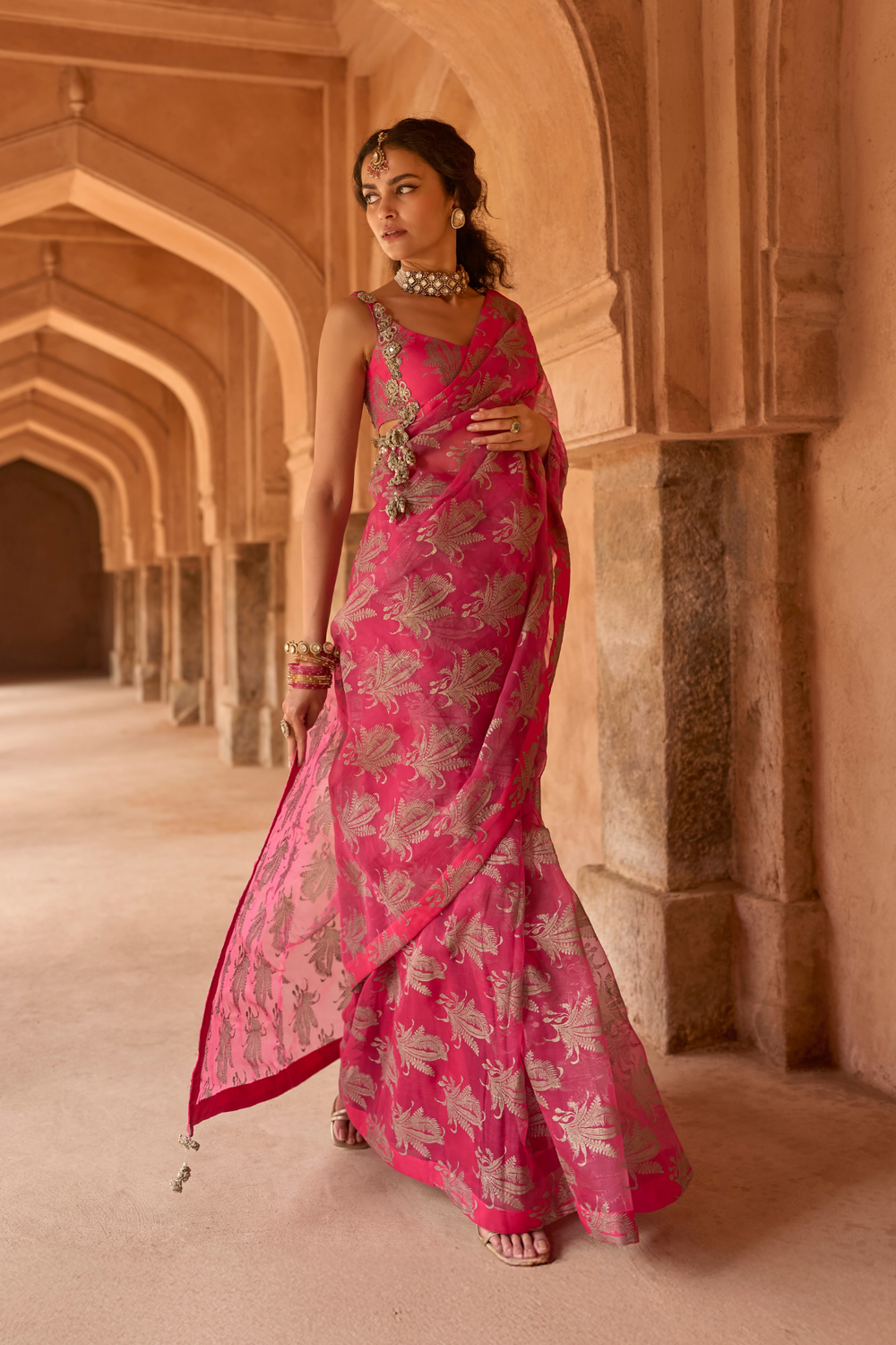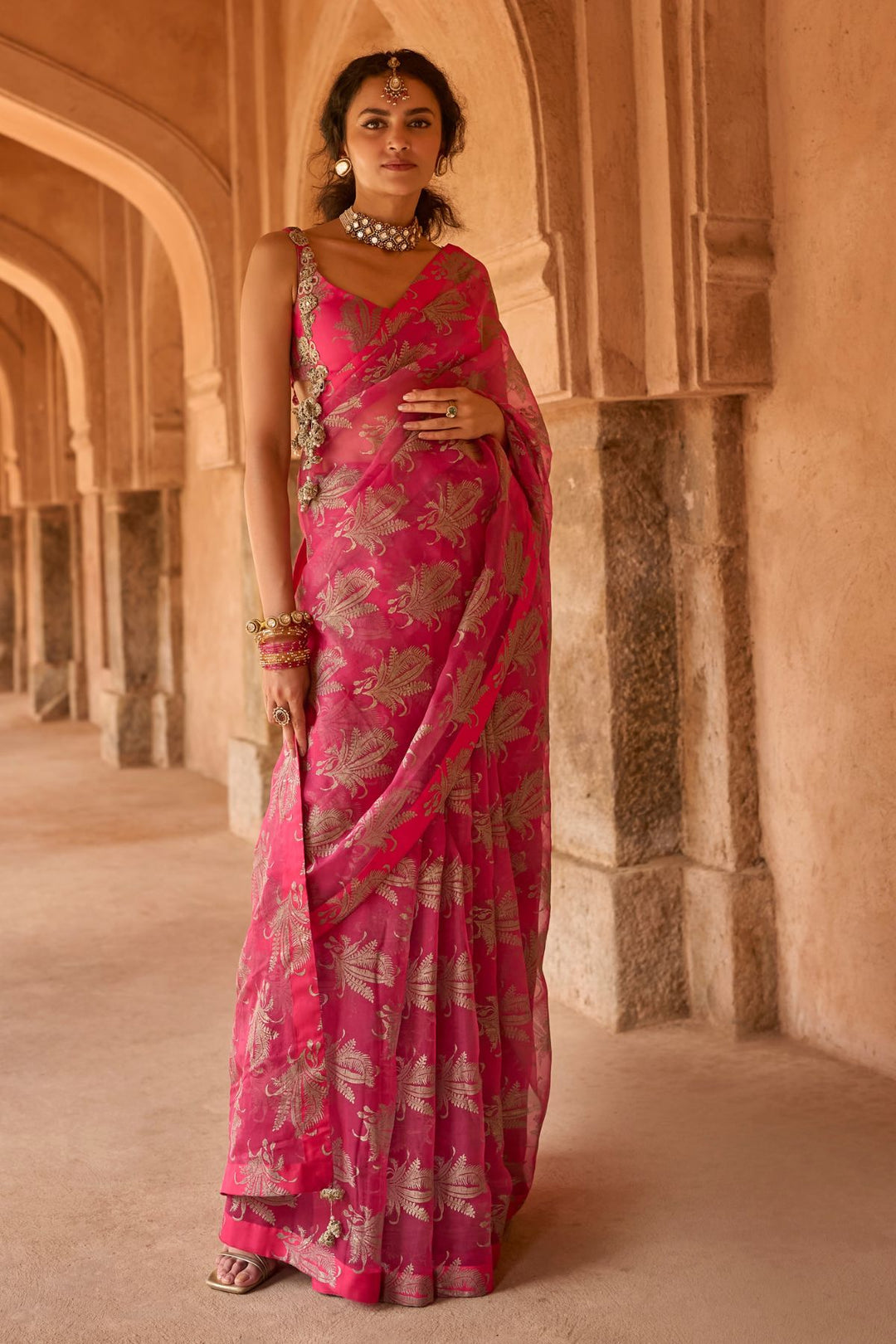 Fuchsia saree with bahaar blouse