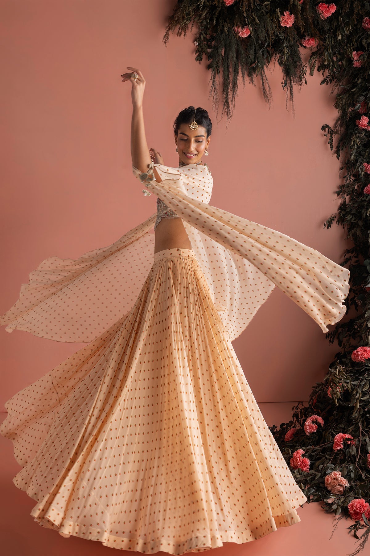 Fit:Â Blouse - Body fit, Skirt - fit & flare, Cape - free size Â