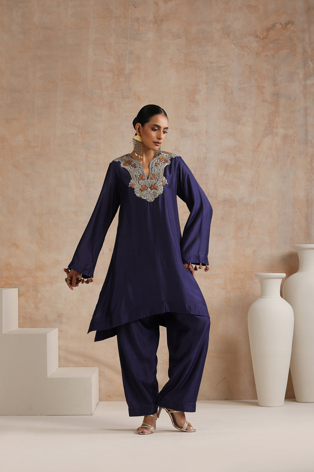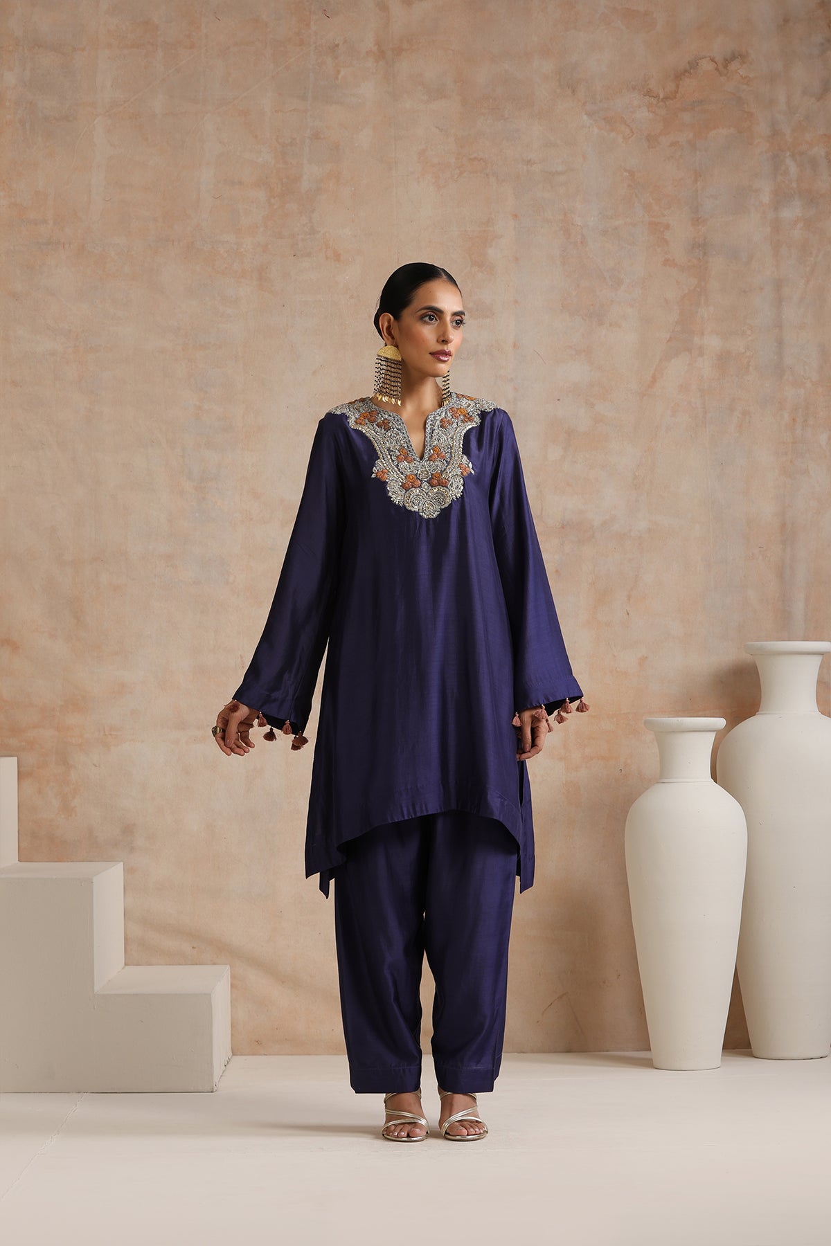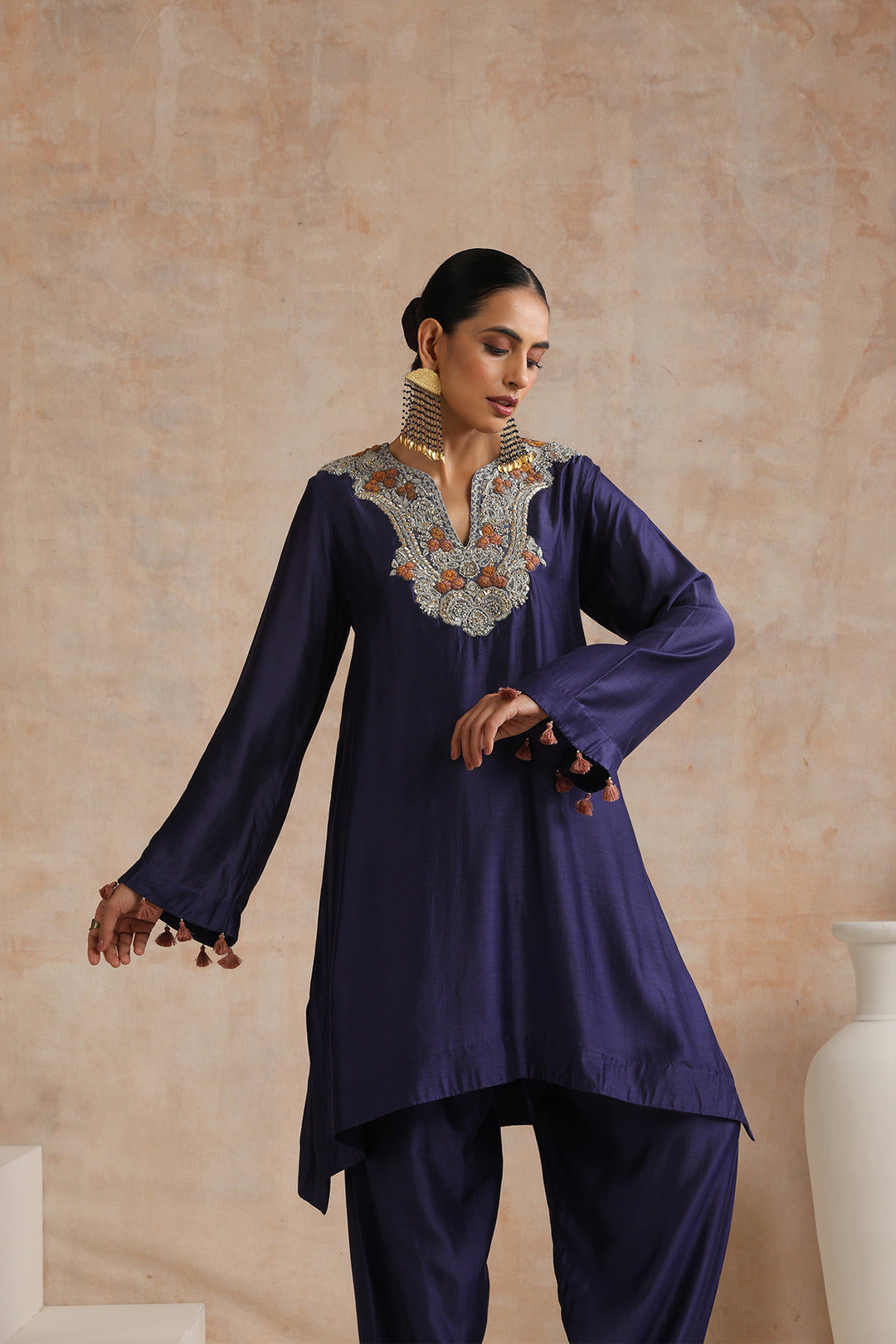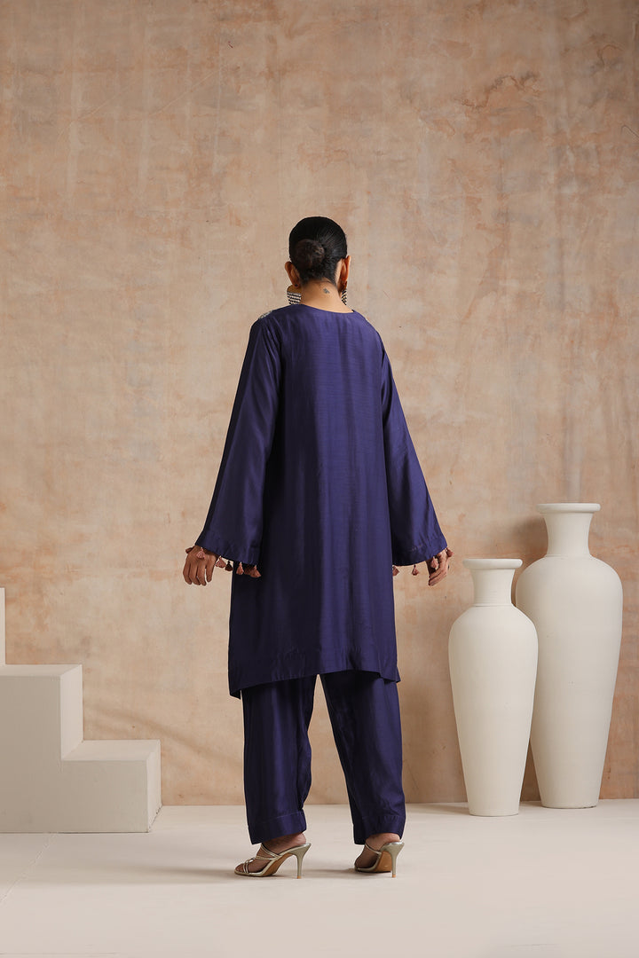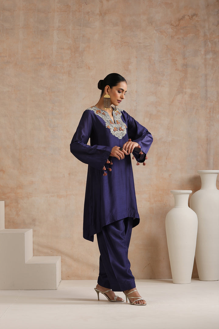 Featuring Blue embroidered kurta with tassel detailing on sleeves paired with matching salwar.